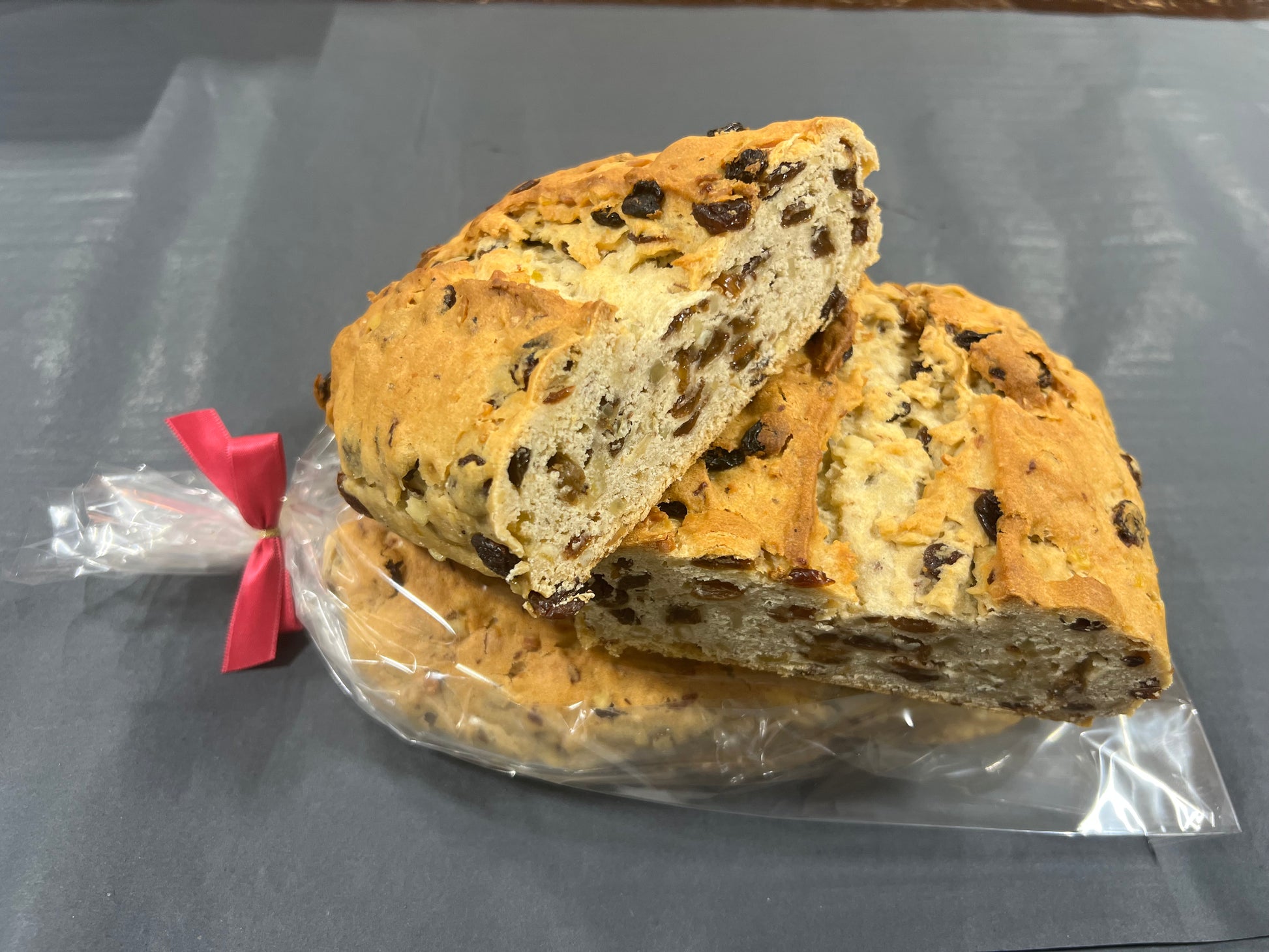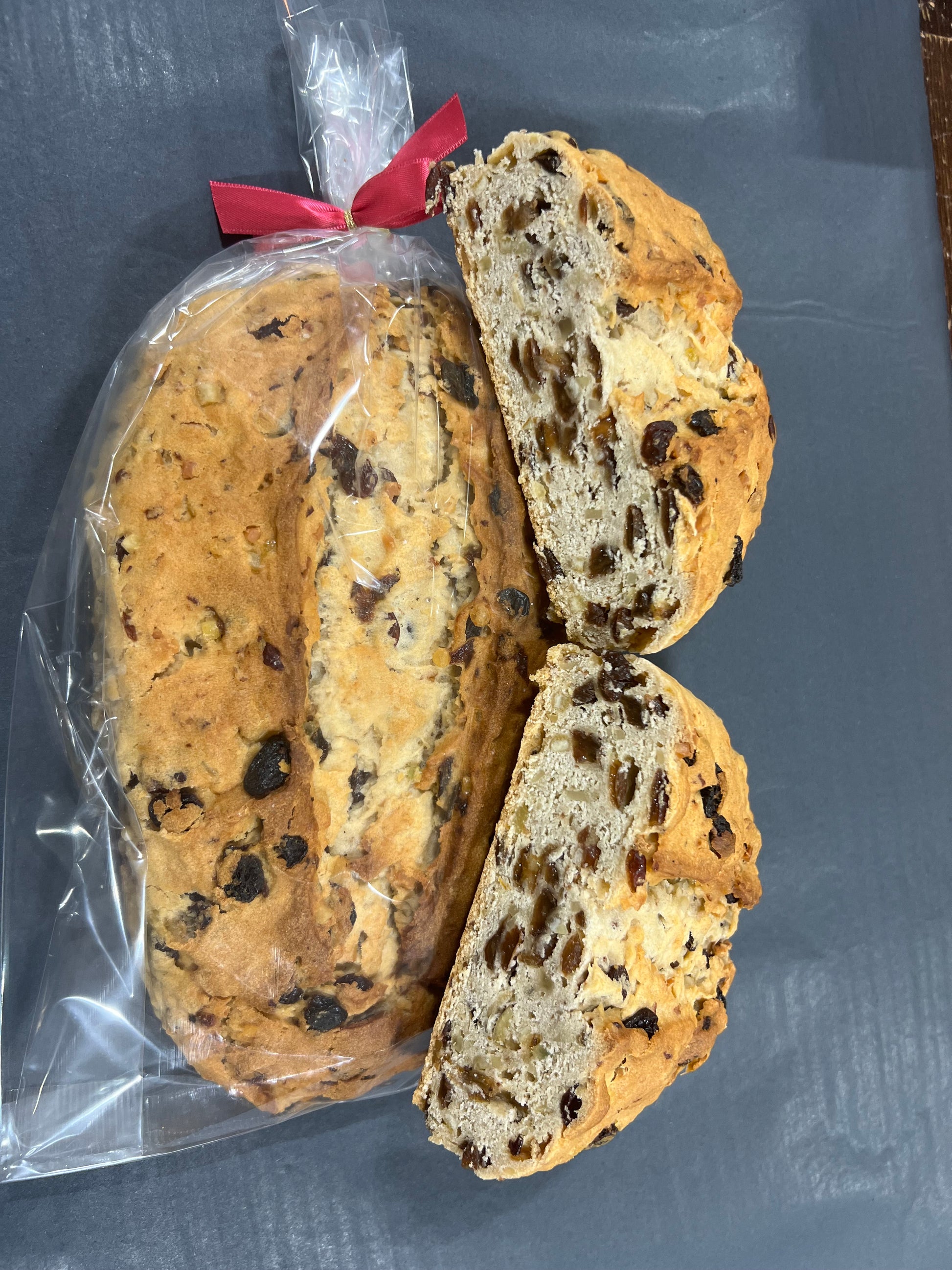 Zutaten | WHEAT FLOUR, sultanas, BUTTER, sugar, water, icing sugar, Clarified butter, candied orange peel (orange peel, glucose syrup, sugar, acidifier: citric acid), almonds, candied fruit peel (cedar fruit peel, glucose syrup, sugar, acidifier: citric acid), yeast, bitter almond semolina, whole milk powder, rum, table salt, lemon peel, orange peel, mace, spices |
