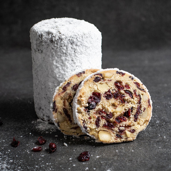 Zutaten | WEIZENMEHL, Cranberrys (20%), BUTTER, Wasser, Zucker, MACADAMIA-NÜSSE (8%), Orangeat, MANDELN, Sukkade, Edelhefe, VOLLMILCHPULVER, BITTERMANDELGRIEß, Steinspeisesalz (jodfrei), Zitronenschale, Orangenschale, Macisblüte, Zedernfruchtschale, Glukosesirup, Aromen, Zitronensäure |
